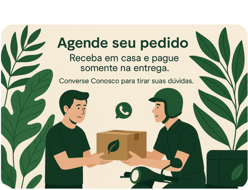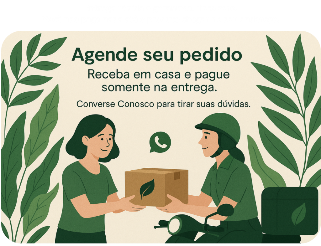 SIM! Você faz o pedido com a gente, nós agendamos o melhor horário para te entregar, você recebe em casa e só paga no momento da entrega, com dinheiro, pix, débito ou crédito em até 12x na máquina de cartão. É prático, seguro e sem surpresas! Fale conosco pelo WhatsApp.