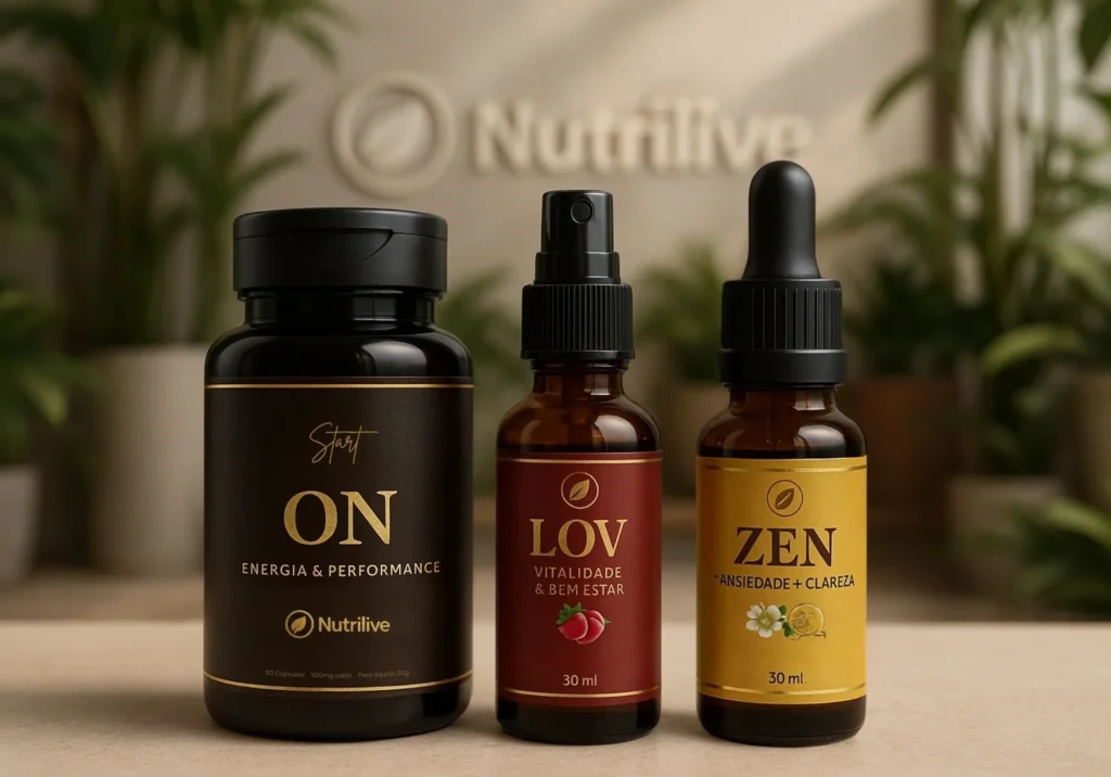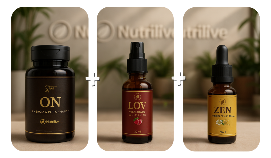 Como o Nutrilive LOV (spray) e o Nutrilive ZEN (gotas) são líquidos, a absorção é muito mais rápida, e o corpo sente a diferença quase imediata — principalmente na disposição, no humor e na ansiedade.